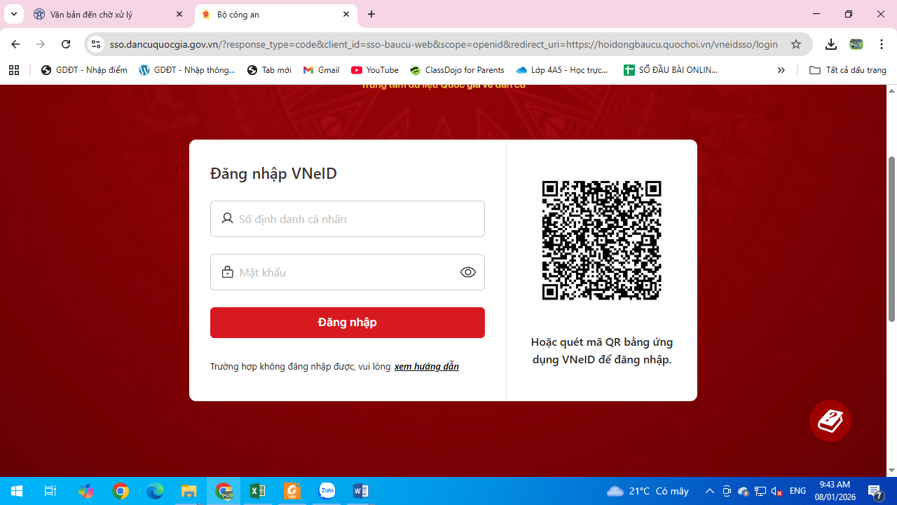 Bước 3: Dùng tài khoản VneID để đăng nhập hệ thống.