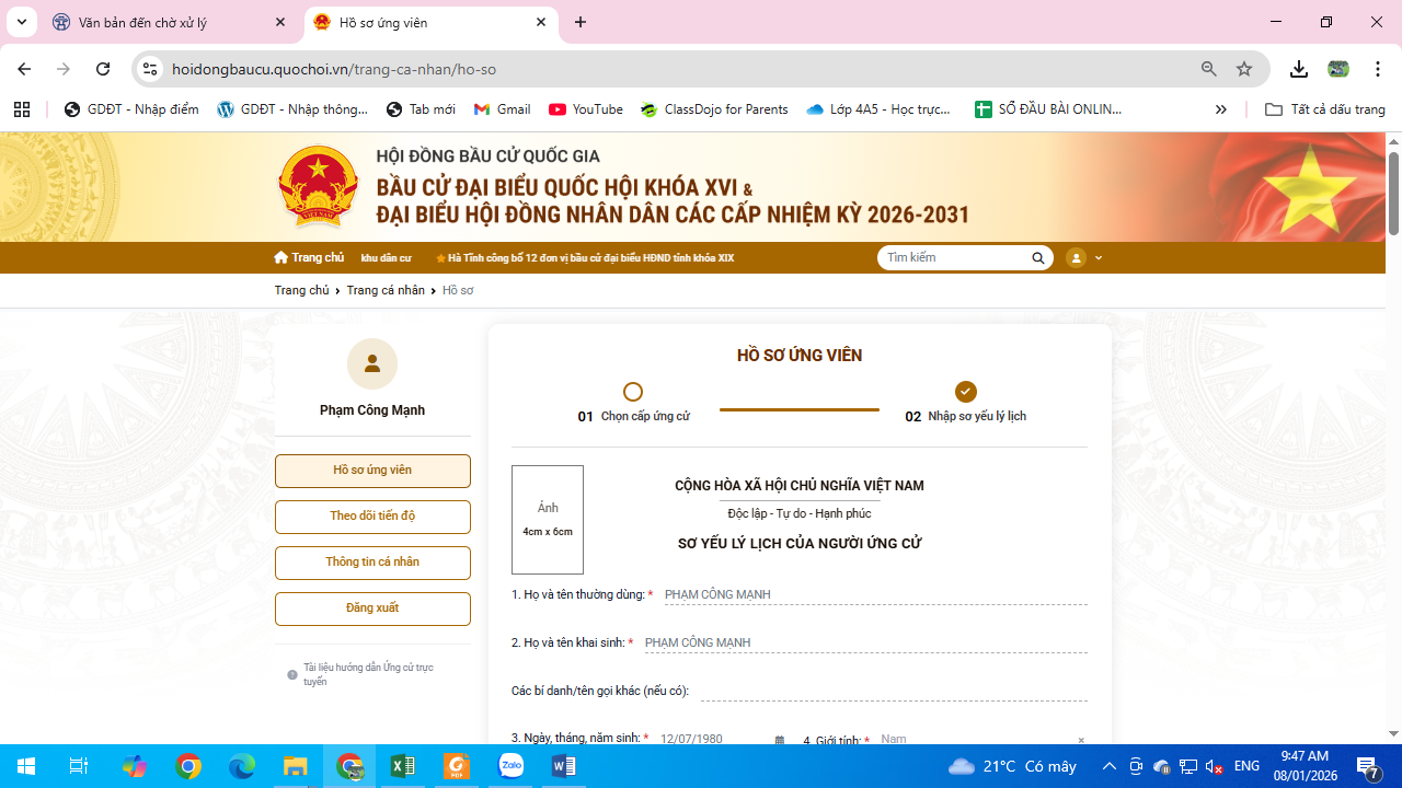 HƯỚNG DẪN NỘP HỒ SƠ ỨNG CỬ ĐẠI BIỂU QUỐC HỘI VÀ ĐẠI BIỂU HĐND CÁC CẤP TRÊN CỔNG THÔNG TIN ĐIỆN TỬ HỘI ĐỒNG BẦU CỬ QUỐC GIA
