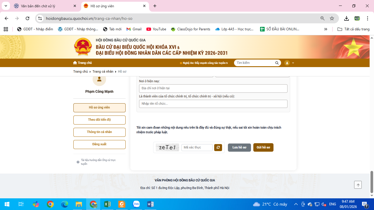 Bước 6: Sau sau khi hoàn thiện hố sơ, nhập mã xác thực, lưu và gửi hồ sơ.